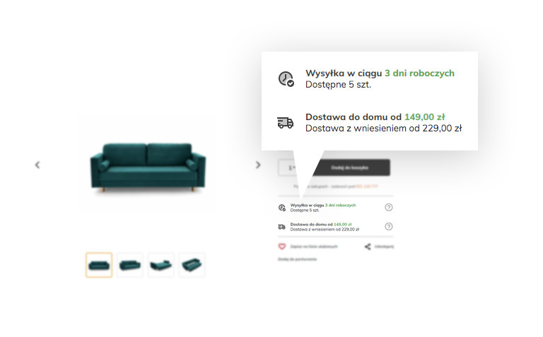 - Pamiętaj, że kurier nie ma obowiązku wniesienia zamówionych produktów jeżeli waga przesyłki przekracza 30 kg, dlatego we własnym zakresie przygotuj miejsce na dostarczane meble i osoby, które pomogą Ci je wnieść w dniu dostawy.