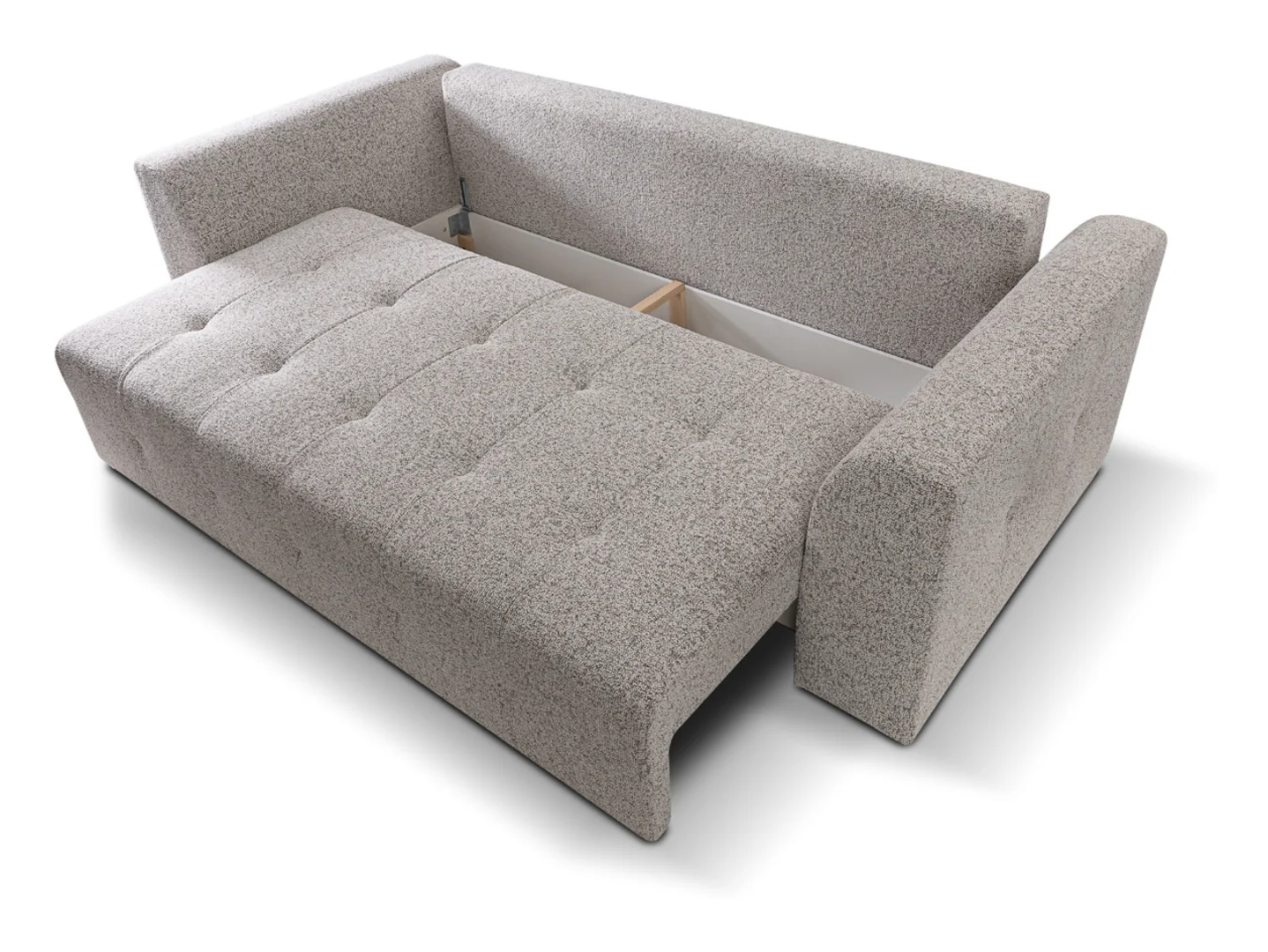 - Sofa z funkcją spania i pojemnikiem na pościel.