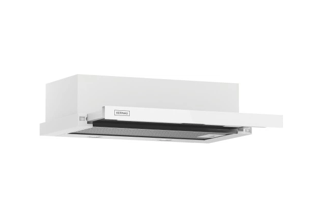 Nadzwyczaj funkcjonalny okap kuchenny KTH 10.164 W marki Kernau to okap teleskopowy o szerokości 60 cm, którego front wykonany jest ze szkła, a korpus jest w kolorze białym. Posiada mechaniczne sterowanie kołyskowe.