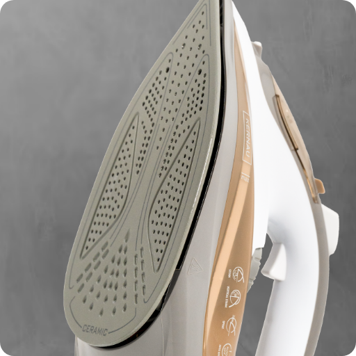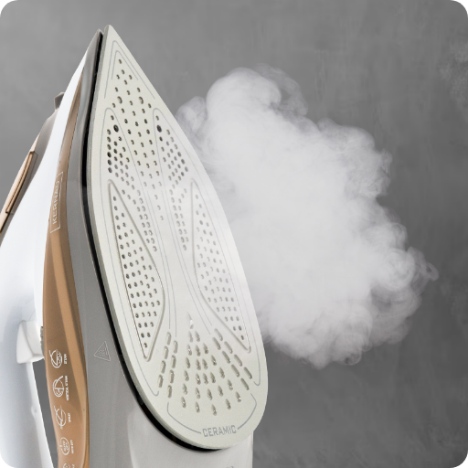 Nasza innowacyjna stopa ceramiczna Titanum łączy w sobie zalety ceramicznej powierzchni – zapewniającej równomierne rozprowadzenie ciepła i delikatne prasowanie – z wyjątkową trwałością tytanu. Ubrania są skutecznie chronione przed zbyt wysoką temperaturą, a żelazko jeszcze bardziej odporne na uszkodzenia.