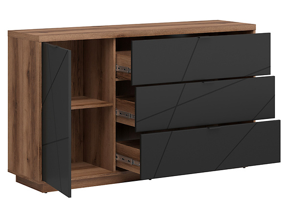 Komoda Forn 156cm szuflady dąb/czarny szafka BRW