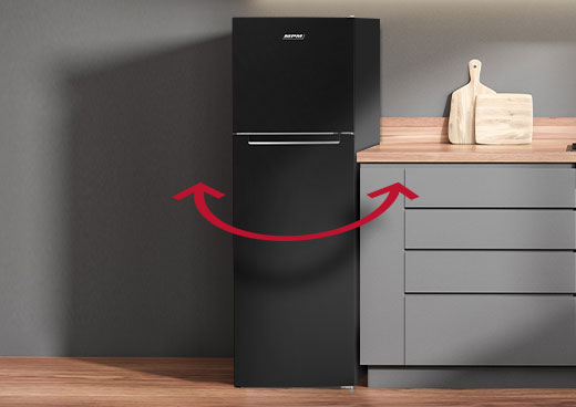➡️Dzięki tej opcji możesz zdecydować, z której strony lodówki drzwi będą się otwierać i dopasować je do układu kuchni lub własnej wygody.