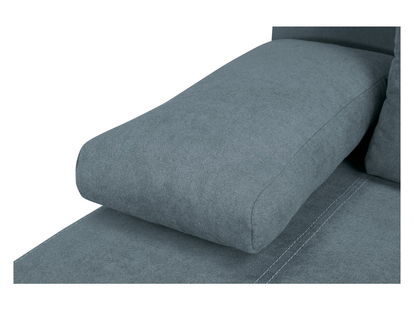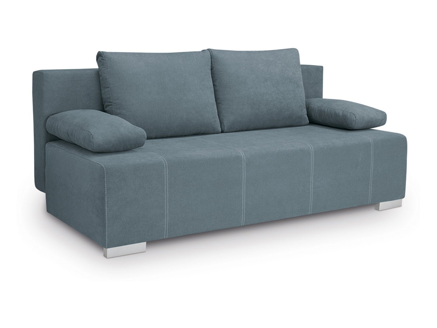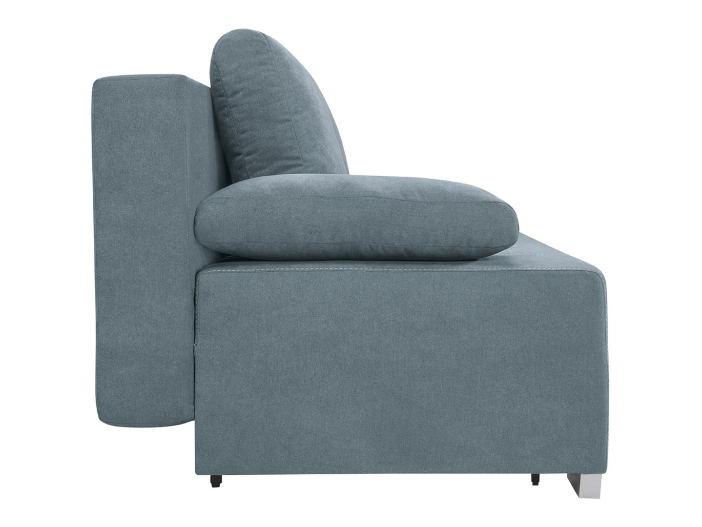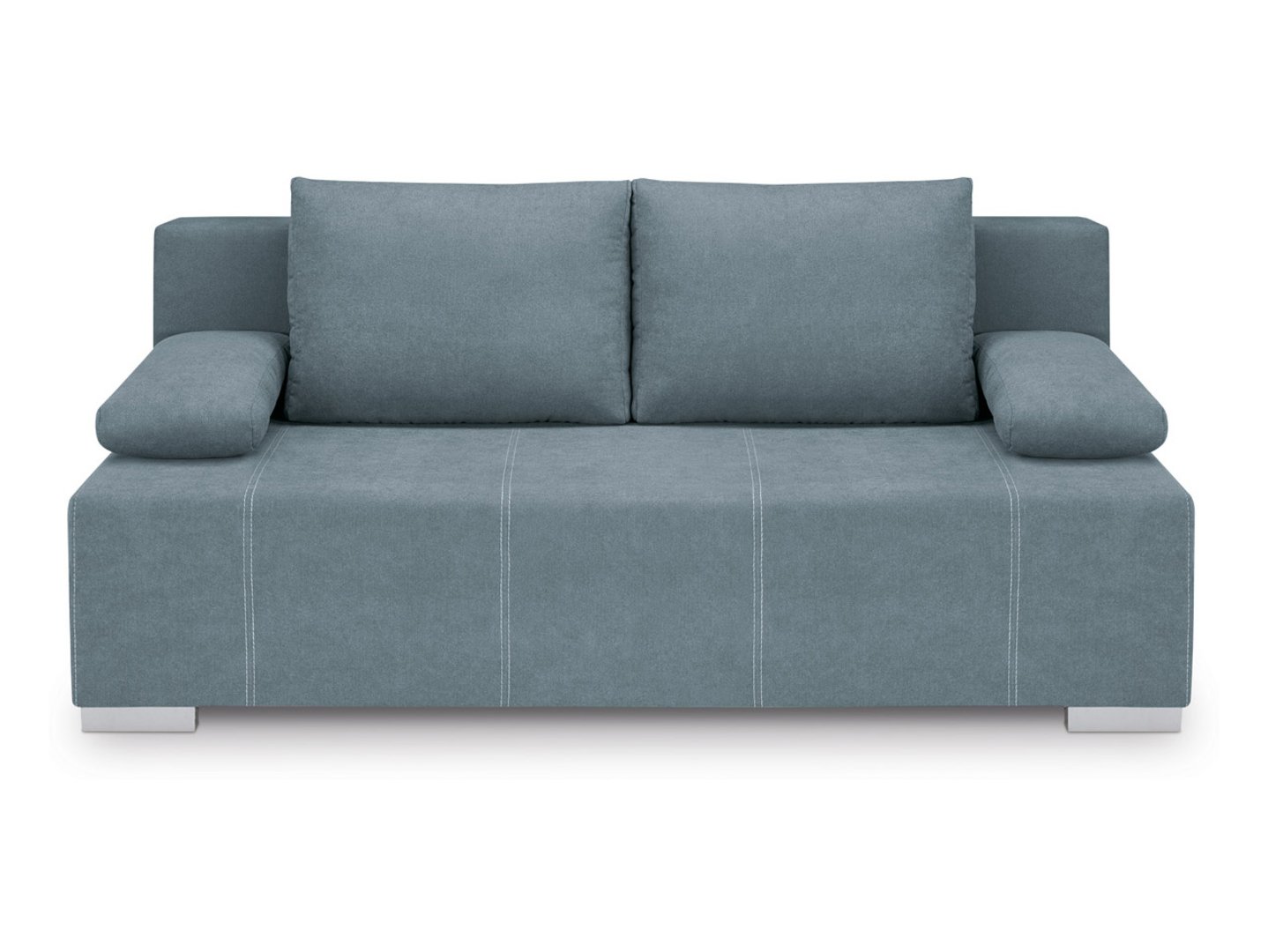 Stopki z tworzywa w satynowym wykończeniu oraz tapicerowany tył – sofa prezentuje się doskonale z każdej strony.