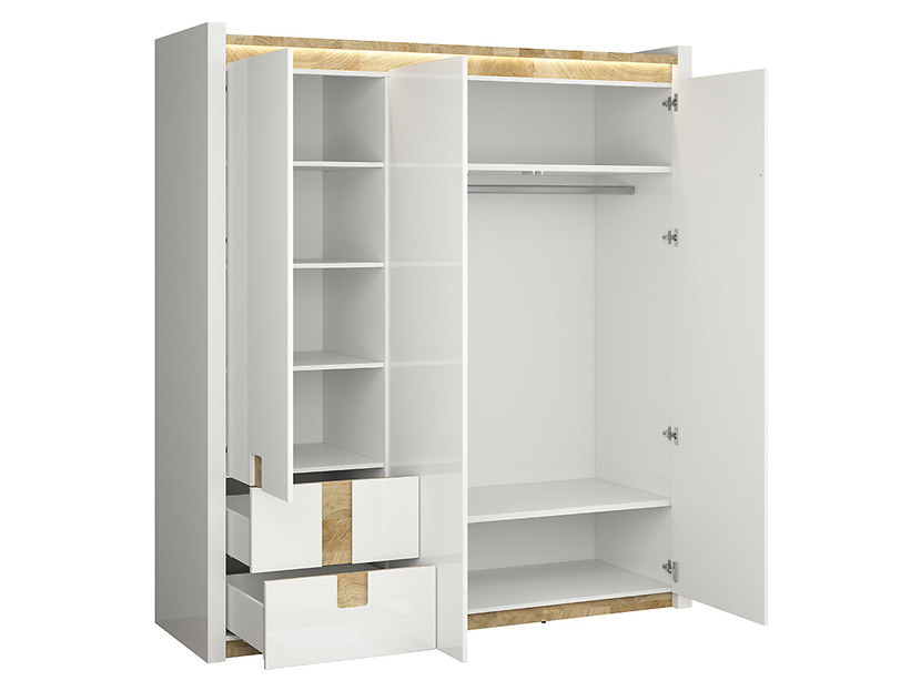 Szafa Alameda trzydrzwiowa biały połysk/dąb westminster/biały połysk BRW