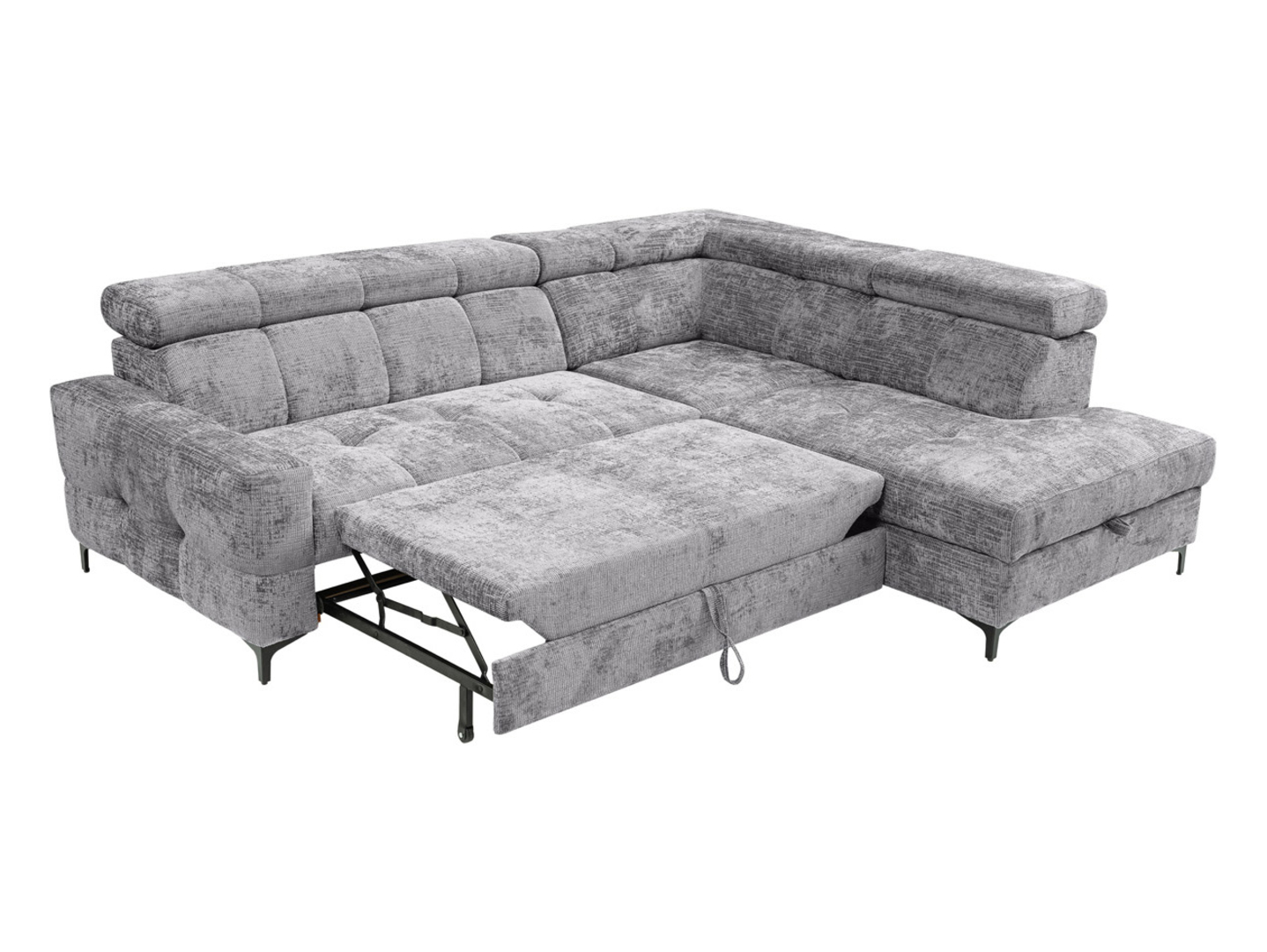 - Narożnik lewostronny z funkcją spania Leno szenilowy szary BRW