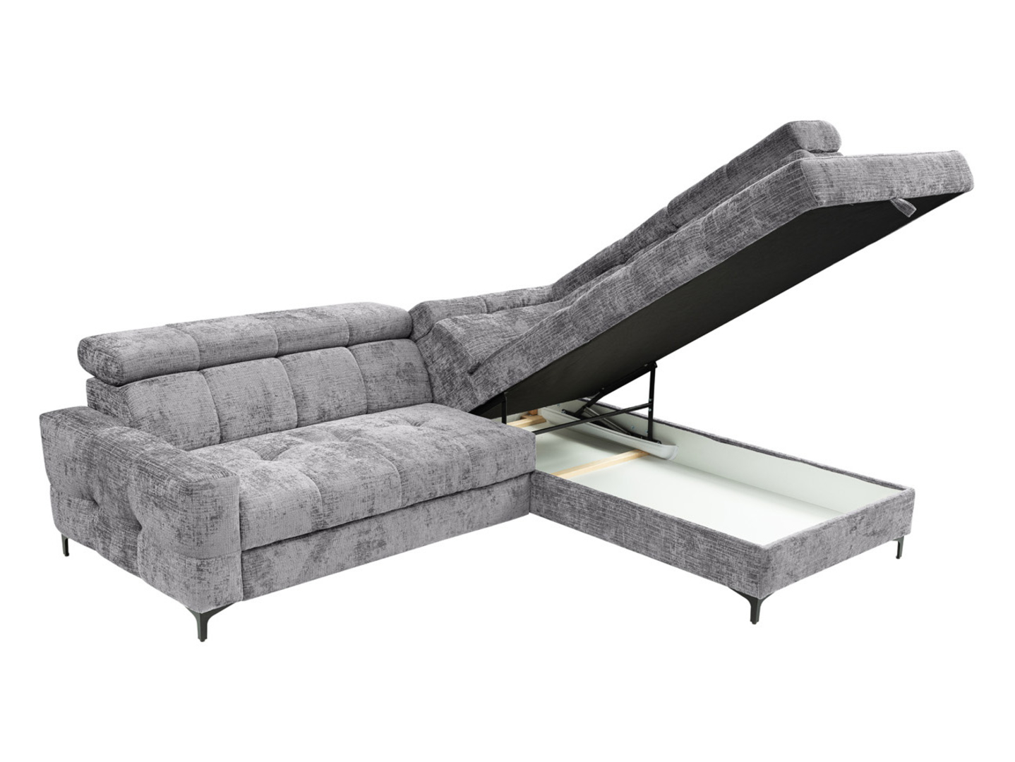 Narożnik Leno to idealna propozycja dla osób ceniących nowoczesny design, wygodę i funkcjonalność. Lewostronna konstrukcja sprawia, że doskonale dopasuje się do układu Twojego salonu, a szara tkanina szenilowa dodaje wnętrzu elegancji i przytulności.