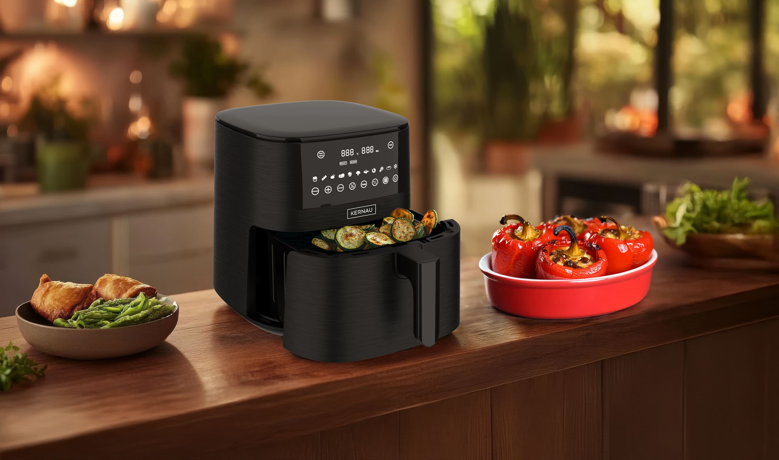 Z frytkownicą KSAF 616 EB gotowanie staje się wyjątkowo proste dzięki 11 programom automatycznym, w tym funkcji Frozen foods, która pozwala na szybkie przygotowanie mrożonych produktów. Regulacja temperatury od 40°C do 200°C umożliwia dopasowanie trybu pracy do potrzeb różnych potraw, od delikatnych warzyw po chrupiące przekąski. Elektroniczny panel ułatwia sterowanie, pozwalając na precyzyjne ustawienie parametrów smażenia.