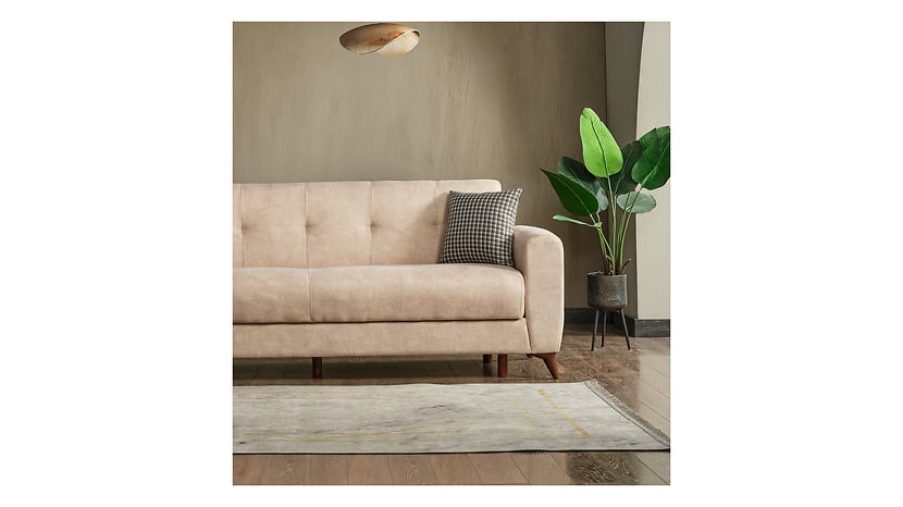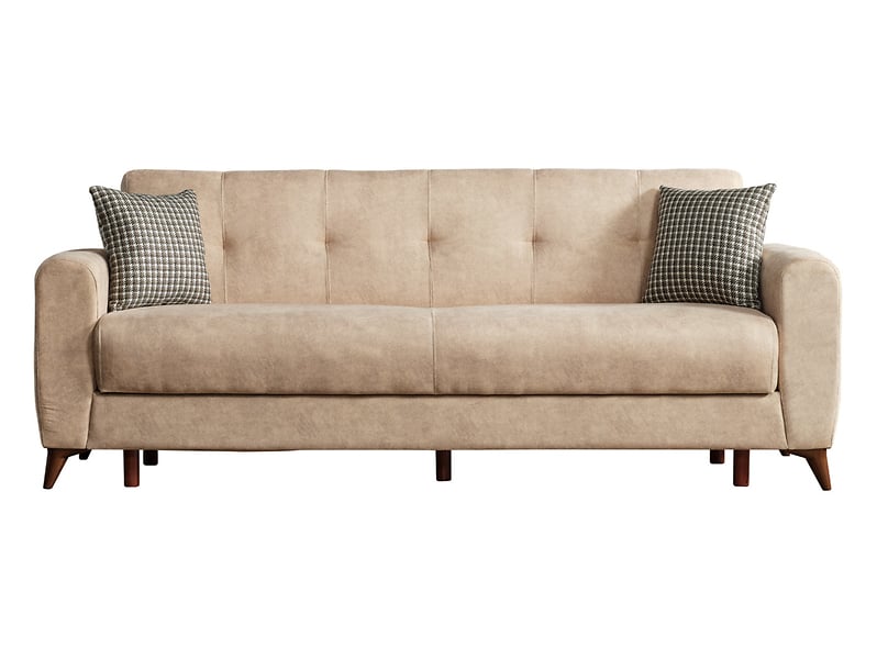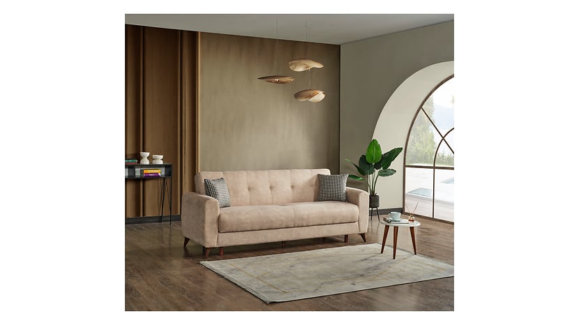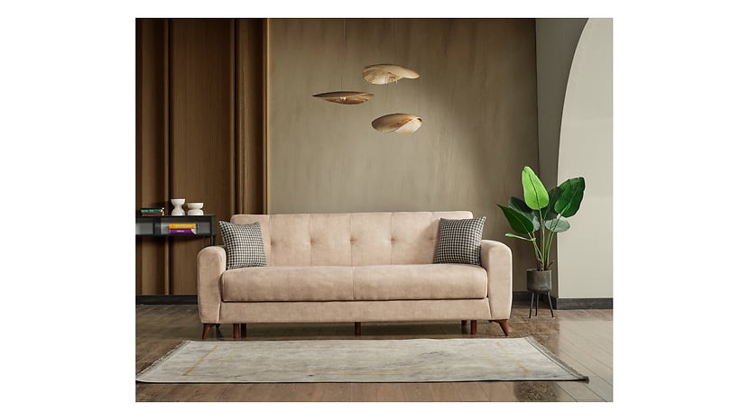 - Wersalka trzyosobowa Dorian rozkładana z pojemnikiem szenilowa beżowa BRW