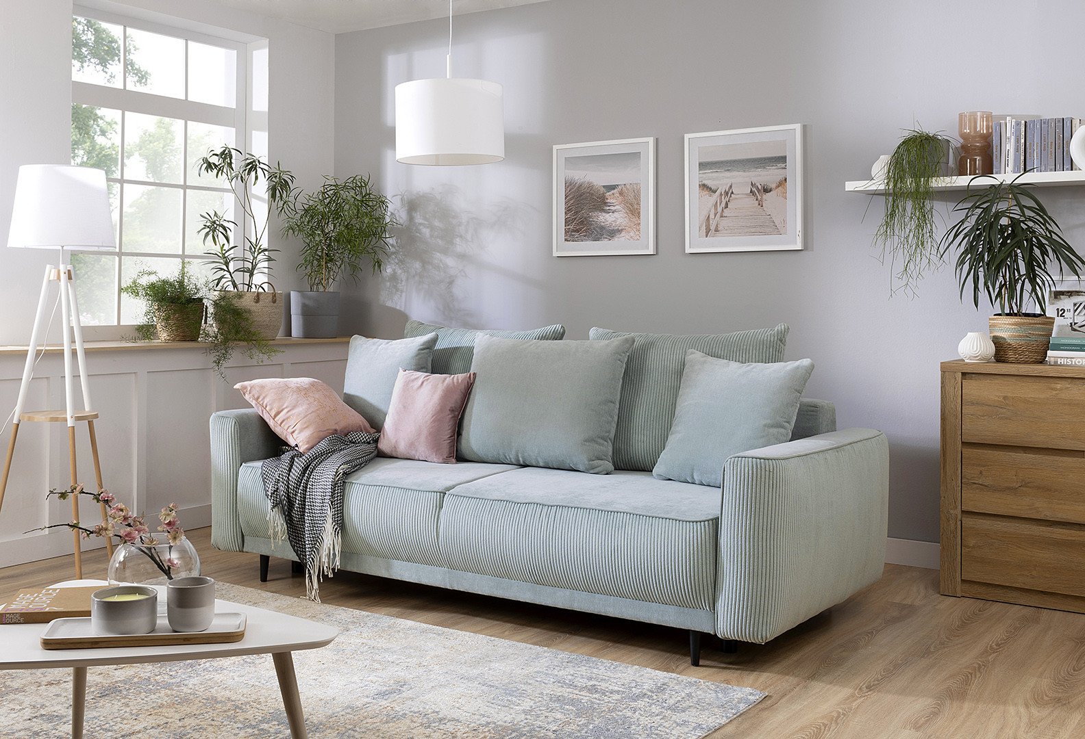 Sofa Trzyosobowa Larisa Rozkładana z Pojemnikiem - Miętowa