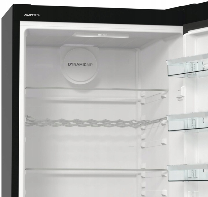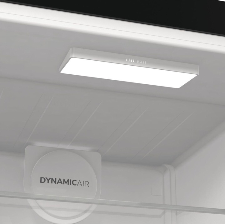 Ulepszony system wentylacji działa zgodnie z zasadami dynamicznego chłodzenia, utrzymując równomierną temperaturę w całej lodówce. Dzięki takiemu systemowi działania, DynamicCooling przyczynia się do oszczędności energii i należy do kategorii cech przyjaznych środowisku.