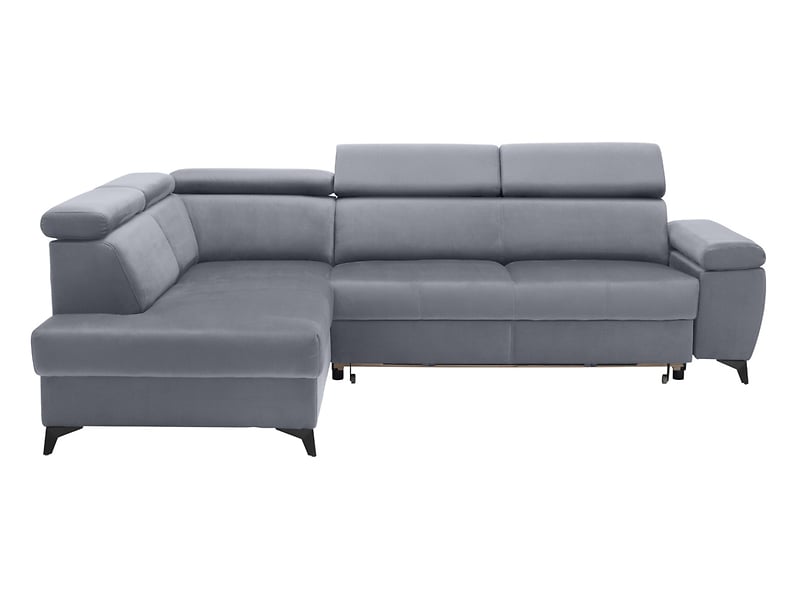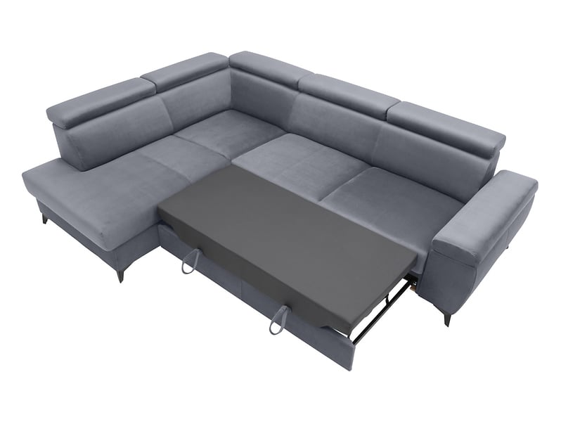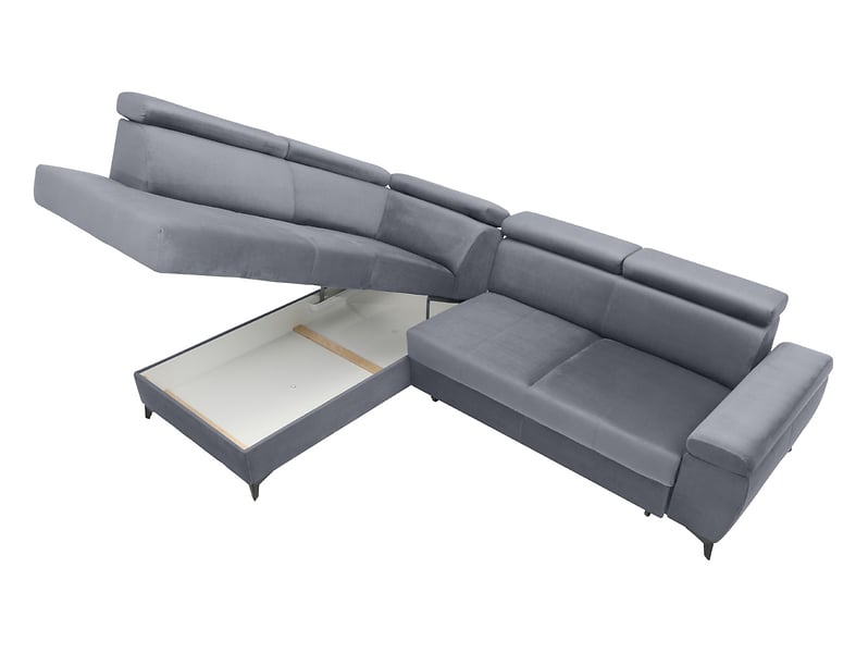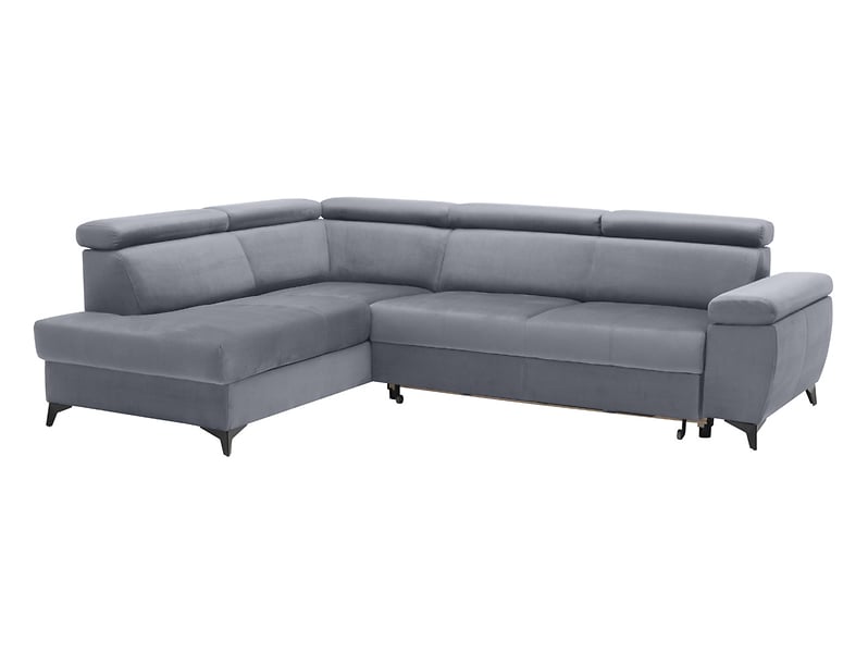 Narożnik lewostronny MELLOW – welurowy, szary, rozkładany z pojemnikiem