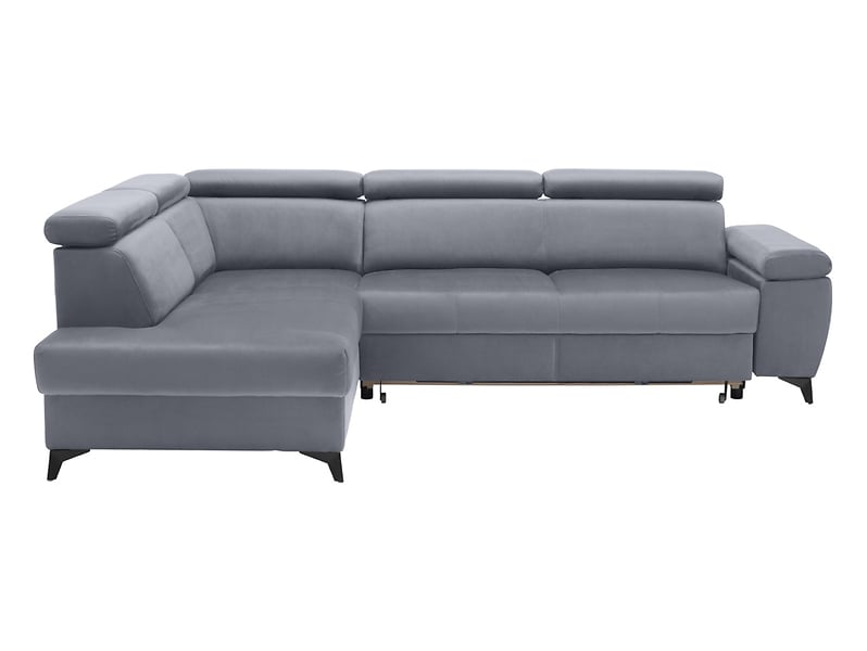 - Narożnik lewostronny Mellow rozkładany z pojemnikiem welurowy szary BRW