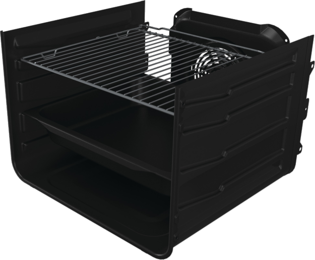 Technologia MultiAir gwarantuje optymalny obieg ciepła wewnątrz piekarnika. Dzięki sprytnie rozmieszczonym otworom wentylacyjnym na tylnej ścianie oraz unikalnemu, zaokrąglonemu kształtowi, powietrze jest równomiernie rozprowadzane w całym piekarniku. Wentylator przepycha gorące powietrze wokół całej objętości piekarnika, dzięki czemu potrawy są idealnie upieczone z każdej strony. Dynamiczny ruch powietrza umożliwia również jednoczesne pieczenie na wielu poziomach bez mieszania się zapachów i smaków.