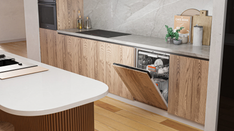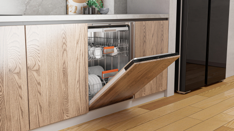 Zmywarka została wyposażona w zawiasy ślizgowe, które gwarantują stabilność i płynność otwierania frontu. To idealne rozwiązanie do nowoczesnych kuchni, w których liczy się zarówno estetyka, jak i funkcjonalność. Dodatkowo silnik bezszczotkowy ogranicza hałas do zaledwie 42 dB, co oznacza, że zmywarka pracuje niemal bezszelestnie.