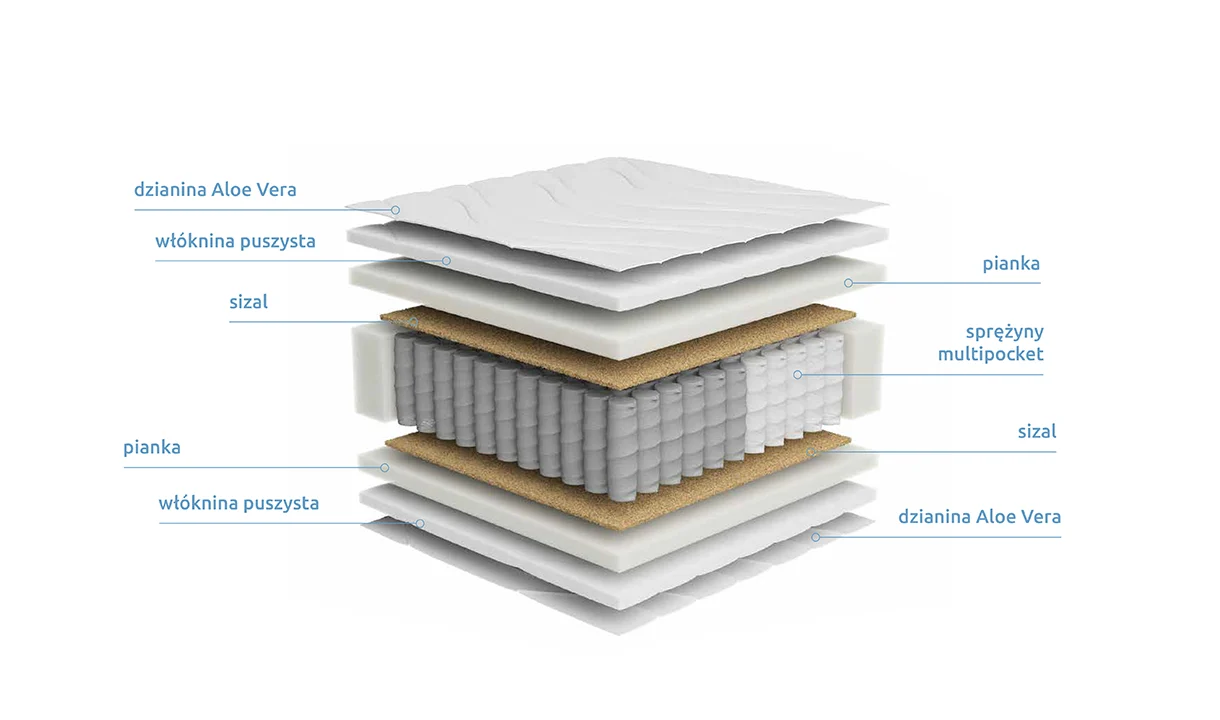- Wkład materaca stanowią pracujące niezależnie sprężyny multipocket.