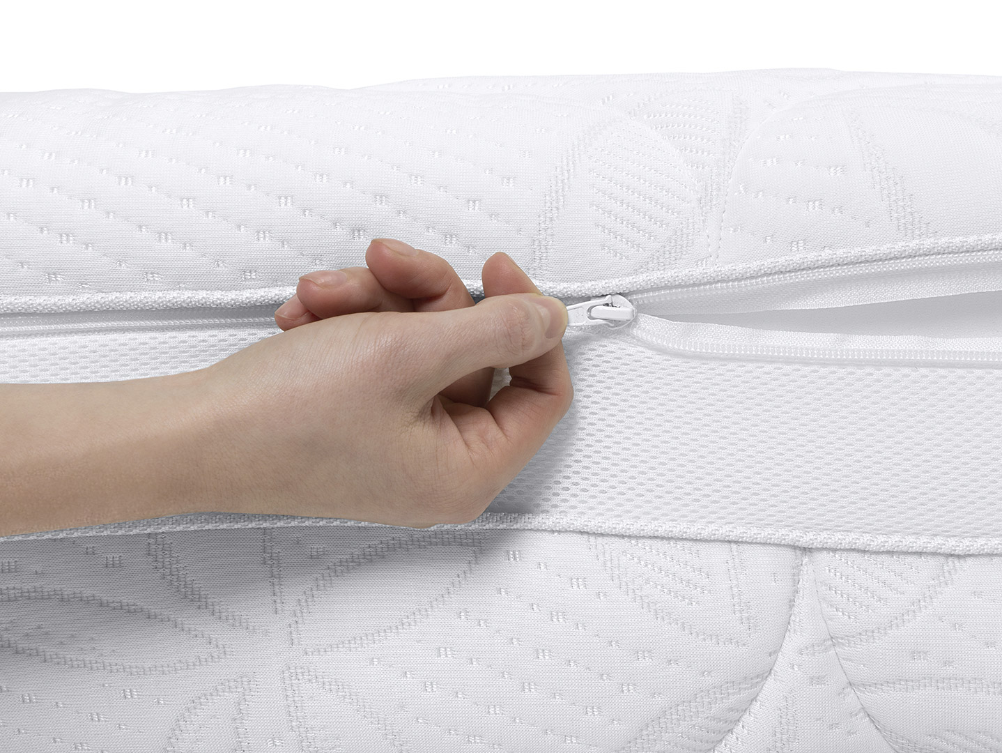 - Pokrowiec posiada zamek rozdzielczy z 4 stron materaca umożliwiający łatwe zdejmowanie.