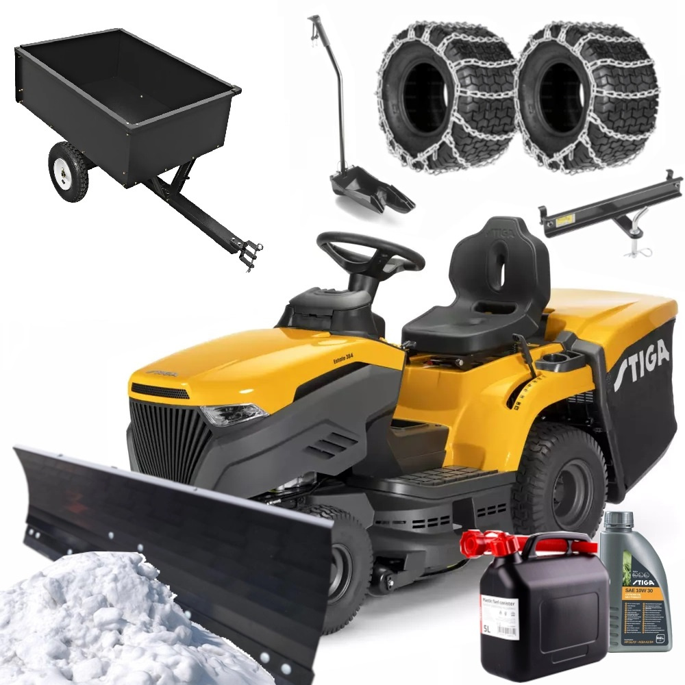 Traktor Stiga Estate 384 Automat PŁUG 110cm + ŁAŃCUCHY+ przyczepka