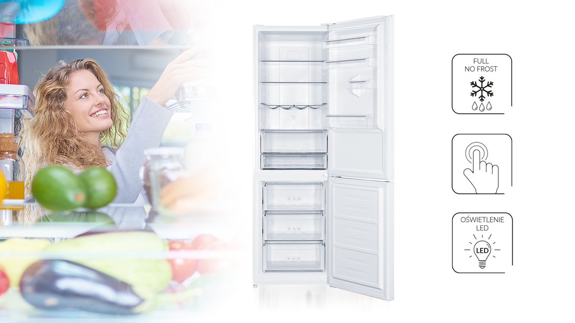Lodówka z zamrażalnikiem dolnym Full No Frost MPM-357-FF-31W/AA to nowoczesne, wyposażone w wiele przydatnych funkcji urządzenie – na miarę współczesnej kuchni i wysokich oczekiwań.
