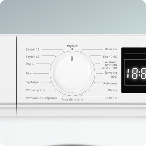 Czytelny wyświetlacz pokazuje dokładny czas pozostały do końca cyklu, pozwalając lepiej zaplanować codzienne obowiązki. Dzięki temu masz pełną kontrolę nad przebiegiem każdego prania.