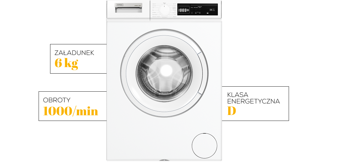 Pojemność 6 kg w kompaktowej obudowie to idealne rozwiązanie dla singli, par i małych rodzin. Bęben o objętości 44 litrów zapewnia efektywne pranie bez dużego zużycia wody czy prądu.