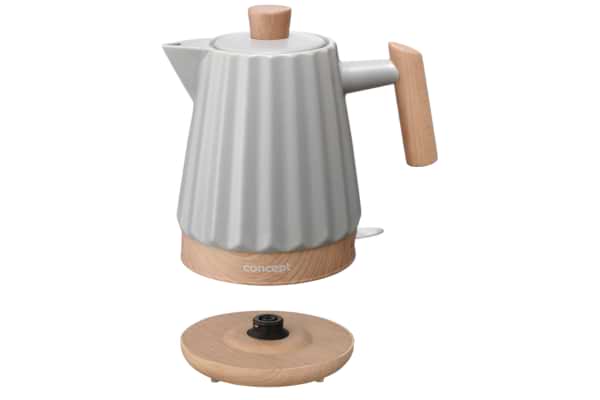 Czajnik elektryczny ceramiczny Birdy RK0091 o pojemności 1,5 l to elegancki i stylowy dodatek do każdej kuchni. Połączenie jasnoszarej ceramiki z wyrafinowanym designem drewna tworzy nowoczesny, a jednocześnie naturalny wygląd, który łatwo wkomponowuje się w różne wnętrza. Wnosi do kuchni nutę elegancji i naturalnego piękna, dzięki czemu staje się nie tylko funkcjonalnym, ale i dekoracyjnym elementem w Twoim domu.