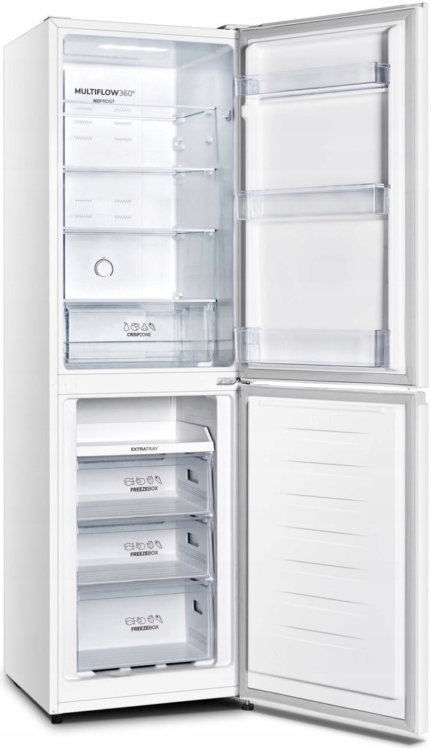 Lodówka Gorenje NRK418ECW4 to nowoczesny sprzęt dla każdego domu. Wykonana w białym kolorze, posiada pojemność 256l, w tym 171l dedykowane jest dla części chłodzącej a 85l dla części zamrażającej. Wyposażona w system chłodzenia MultiFlow 360°, który zapewnia optymalne warunki dla przechowywania żywności. Funkcja NoFrost eliminuje konieczność rozmrażania. Wyróżnia się niskim poziomem hałasu - zaledwie 41 dB. Szuflada CrispZone idealnie nadaje się do przechowywania warzyw i owoców.