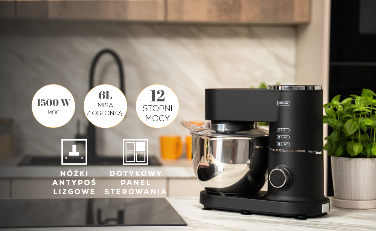 - Dzięki 12-stopniowej regulacji prędkości zyskasz pełną kontrolę nad wyrabianiem ciasta, mieszaniem składników i rozdrabnianiem.
