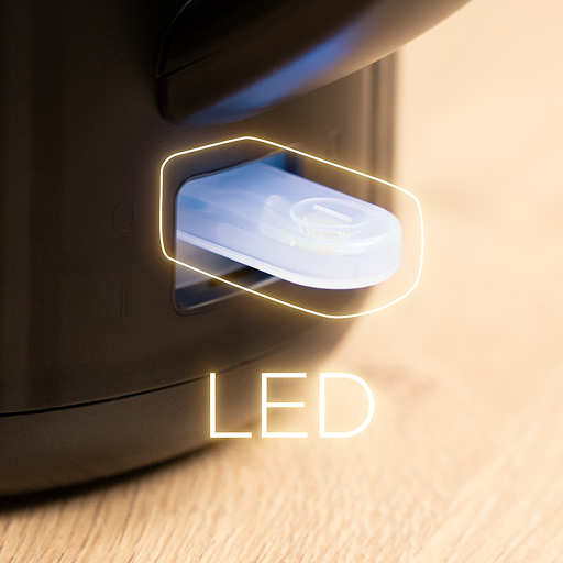 Podświetlany włącznik LED w czajniku to praktyczny detal, który zwiększa komfort i wygodę codziennego użytkowania. Subtelne światło informuje o aktualnej pracy urządzenia, dzięki czemu od razu widzisz, czy czajnik jest włączony. To estetyczne i funkcjonalne rozwiązanie, które dodaje urządzeniu nowoczesnego charakteru i ułatwia korzystanie z niego nawet przy słabym oświetleniu