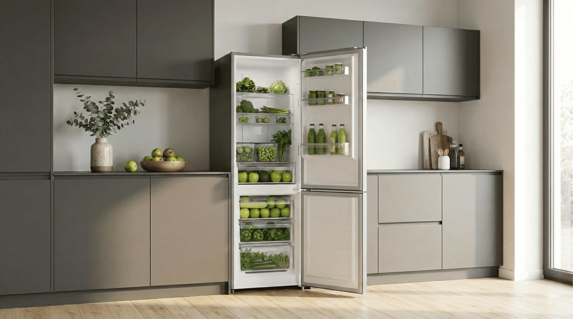 Dzięki zastosowaniu technologii Total NoFrost w chłodziarce i zamrażarce, urządzenie utrzymuje optymalny poziom wilgotności i temperatury, skutecznie eliminując szron i lód. Oznacza to brak konieczności ręcznego rozmrażania i świeżość przechowywanych produktów na dłużej.