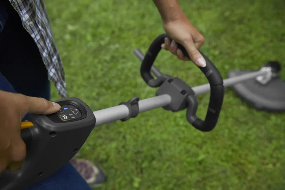 Akumulatorowa kosa BC 700e sprawia, że koszenie jest bardziej komfortowe dzięki regulowanemu, miękkiemu uchwytowi w kształcie pętli, który pozwala ciąć pod idealnym kątem.